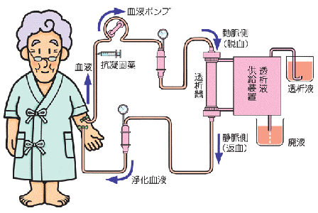 「血液透析」「腹膜透析」という療法があり、どちらも腎臓の排泄機能を代行します。